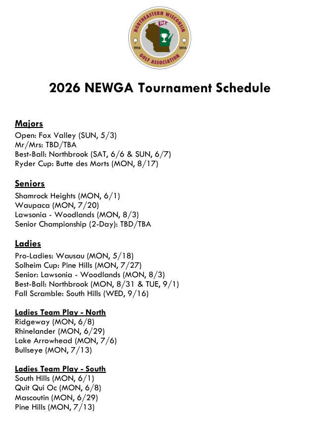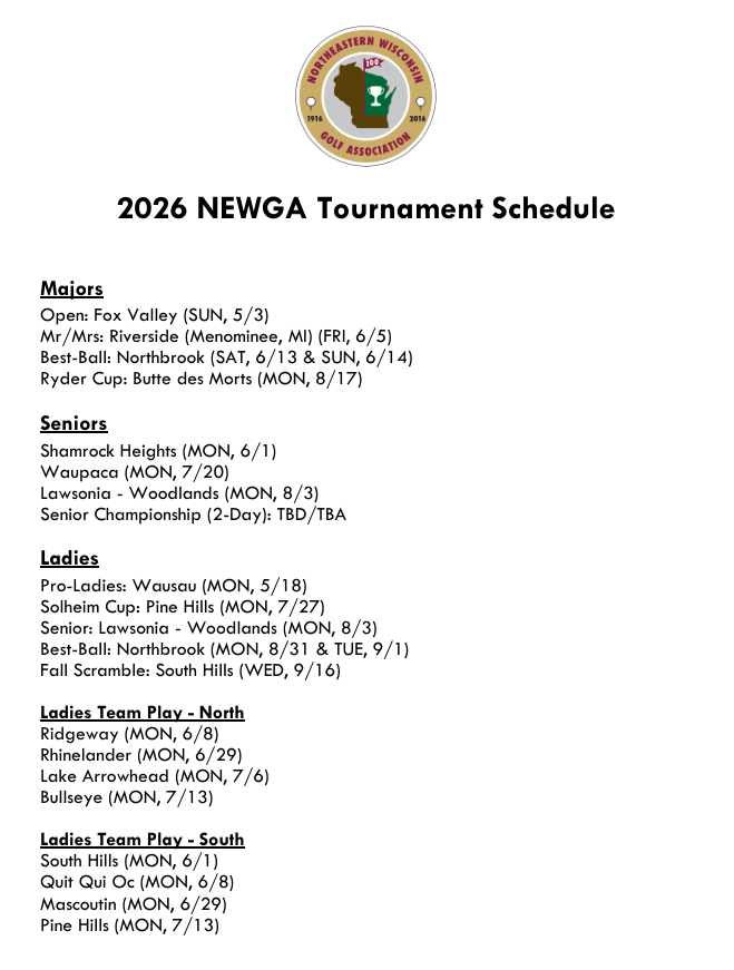 Welcome to the official website of the Northeastern Wisconsin Golf Association.